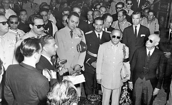 Joaquín Balaguer lee el panegírico ante el féretro de Rafael L. Trujillo en 1961.-