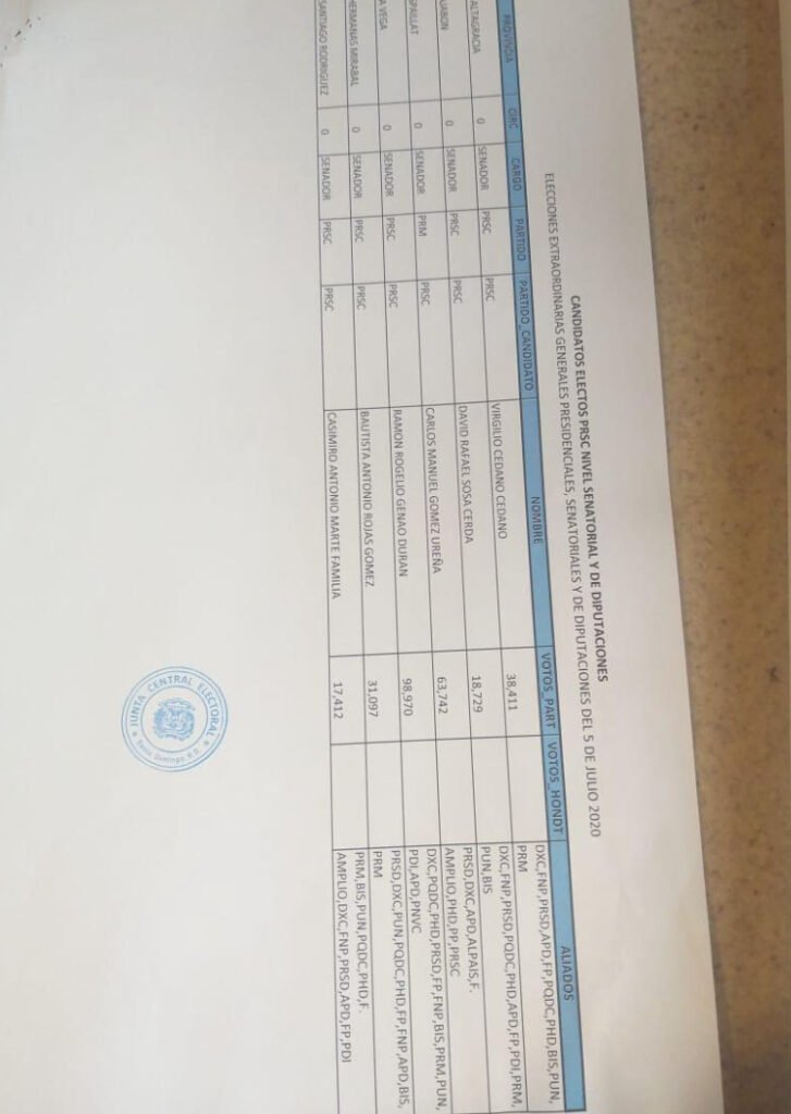 El legislador y alto dirigente reformista mostró a los medios de comunicación la certificación de la JCE firmada por el Secretario General, doctor Hilario Espiñeira Ceballos, en la que ofrece los nombres de los senadores ganados por el PRSC en las elecciones celebradas el pasado 5 de julio.